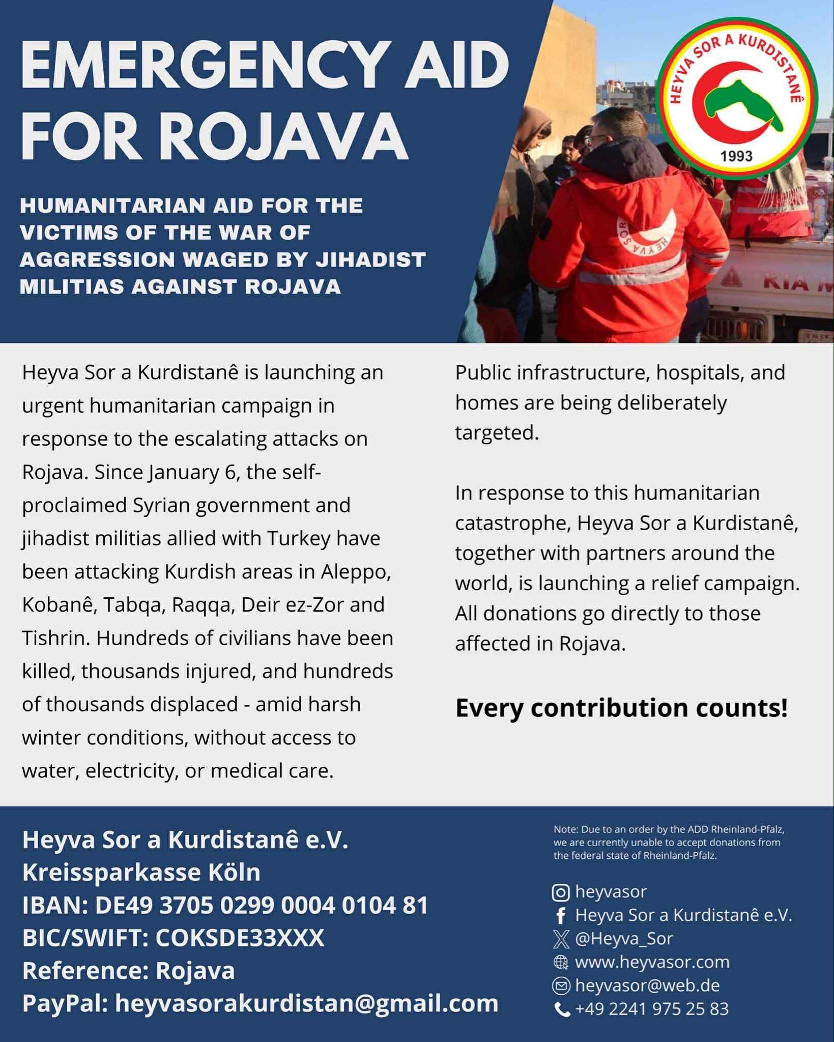 Heyva Sor a Kurdistanê is launching an urgent humanitarian campaign in response to the escalating attacks on Rojava.