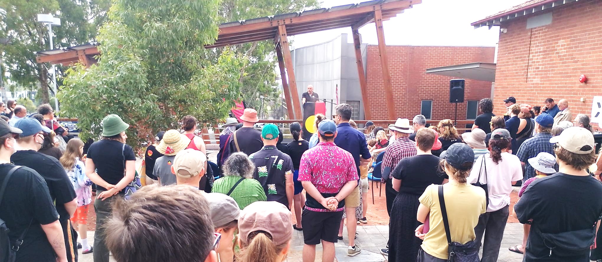 Uncle advised the gathering to reflect on resilience and survival, to listen and learn, and to stand together for truth-telling, justice and Treaty.