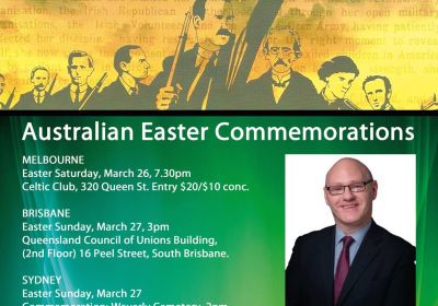 Meet at main entrance. Speaker: Paul Maskey MP Sinn Féin MP for West Belfast. At 5.30pm meet at the Sydney Gaelic Club, Level 1, 64 Devonshire St, Surry Hills. Contact Paddy Gorman for more details on Sydney events: 0418 116 426.