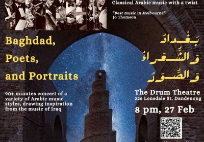Celebrating Iraq's contribution to Arabic music and culture and drawing inspiration from a song made by Fairuz (the iconic Lebanese singer) for Iraq, Tarab Ensemble invites listeners to "Baghdad, Poets and Portraits" concert at the charming stage of The Drum Theatre.