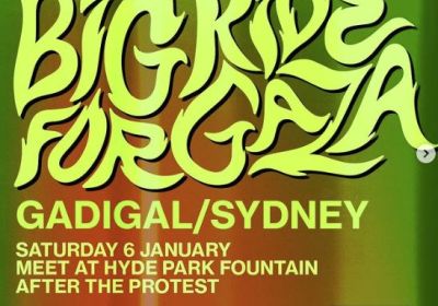 International Big Ride for Gaza: Gadigal Gadigal Country/Sydney ???????/?????? | ??? ???? ??? ???? The Gaza Sunbirds, a paracycling team in Gaza, have organised an International Big Ride for Gaza which is taking place in over 50 cities around the world this Saturday. ?Meet after the rally at Hyde Park Fountain