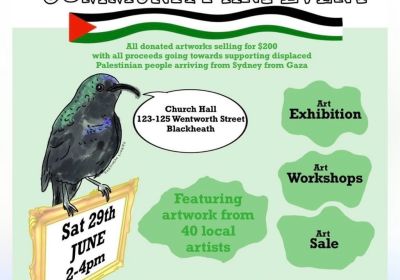 Art with heart Blue Mtns 4 Palestine is a community art exhibition, art sale and art workshops, co-woven by over 40 artists from unceded Dharug and Gundungurra land and beyond, to raise funds for Community Care Kitchen and Palestinian Christians in Australia. Both organisations are working tirelessly to support displaced Palestinians from Gaza who have arrived in Western Sydney.…