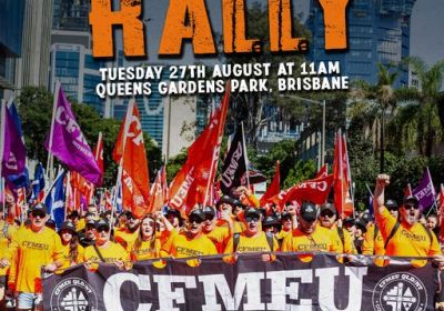 Democracy for CFMEU members rally Queensland Magan-djin/Brisbane CFMEU members deserve control over their Union, just like any other worker. Together, we stand strong to defend the future of our families and our union.