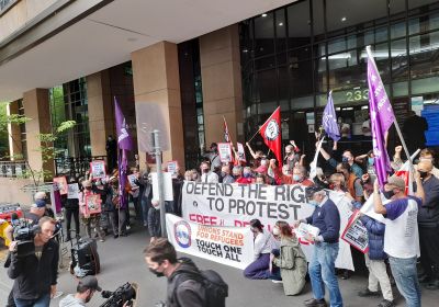Chris Slee reports on a gathering outside the Magistrates Court to support an activist on trial for “inciting” people to support detained refugees.