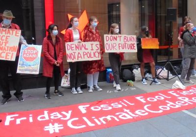 School students protested outside National Australia Bank headquarters calling on it to stop funding fossil fuels. Coral Wynter reports.