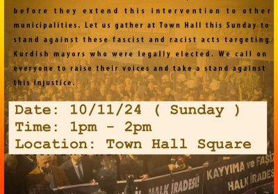 [UPDATE - EVENT CANCELLED] Just as it did after the 2014 and 2019, the Erdogan regime in Turkey has begun removing democratically elected Kurdish mayors and replacing them with stat-appointed trustees. Three co-mayors from the Kurdish-majority cities — Mardin (Mêrdîn), Batman (Elîh) and Halfeti (Xelfêtî) — were removed this week.