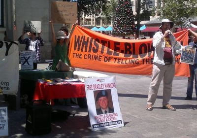 On December 17, activists gathered in Perth’s city centre for a speakout as part of an international day of action for accused Wikileaks' whistleblower Bradley Manning. The action defied attempts by the Perth City Council to close down stalls and take down banners for the action.