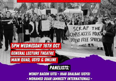 Basic democratic rights have been dangerously restricted at the University of Sydney since October 7 last year. Organised by the National Tertiary Education, this public forum will discuss the McCarthyist regime that university authorities are imposing on staff and students, and its consequences for academic freedom, freedom of assembly, and political freedom in general.
