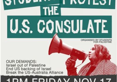 Students Protest the U.S. Consulate Naarm/Melbourne OUR DEMANDS: Israel out of Palestine End US backing of Israel Break the US-Australia Alliance