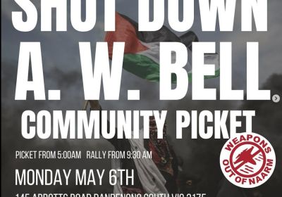 Shut Down AW Bell Community Picket Naarm/Melbourne Shut Down AW Bell Community Picket, 5:00AM Picket, 9:30AM Rally, Monday May 6,145 Abbotts Rd, Dandenong South