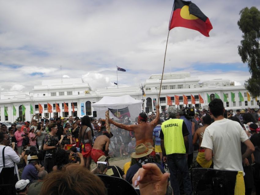 The comments provoked an angry but non-violent protest (see footage here) later that day at a Canberra function attended by Abbott and Labor PM Julia Gillard just 100 metres from the Aboriginal Tent Embassy's 40th anniversary gathering.