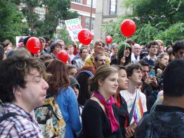 Speakers included Sally Goeldner from Trans Victoria, comedian Joel Creasey and James Campbell from the Melbourne-based gay and lesbian underage group and Minus-18.