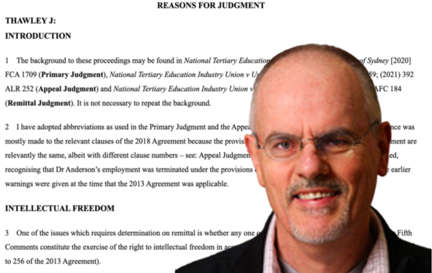 The Federal Court ruled in favour of former University of Sydney lecturer Tim Anderson and the National Tertiary Education Union (NTEU) in an appeal over Anderson’s termination of employment that concluded on October 27.