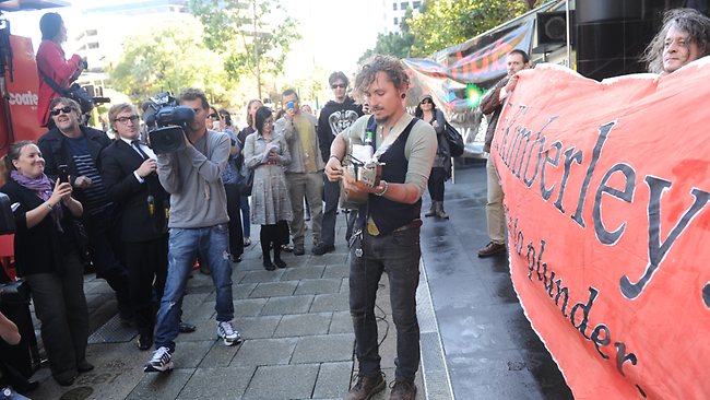 Local campaigners have organised a series of protests to prevent Woodside from beginning work on the development. In response to Woodside applying for access to sand dunes at James Price Point that include culturally important sites such as burial grounds, campaigners blockaded the entrance to Woodside’s office and prevented staff from entering on October 2.