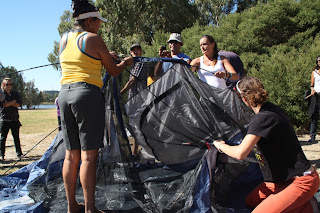 This is what the Nyoongar Tent Embassy looked like before the police invaded. This photo was taken on Thursday March 22 - about one hour before the police arrived. These Embassy representatives were waving at traffic on the Causeway and getting a lot of positive responses from passers by.