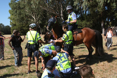 The police came with horses, dog squad, tasers, guns and large numbers - over sixty police and 15 council rangers.