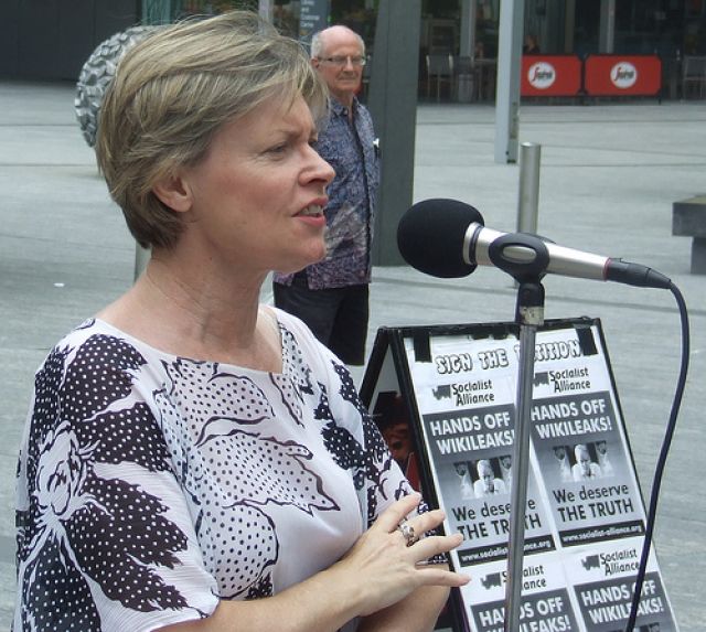 Libby Connors from the Queensland Greens read out a statement from the federal Greens that supported an audit of the 99 Indigenous deaths in custody since 1991, and called for a plan to reinvest funds saved by reducing Aboriginal incarceration rates into improving health and education standards in the communities.