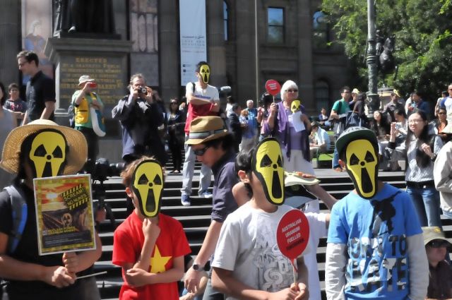 The rally was part of an international day of action. For the Australian rallies, supporting organisations included Japanese for Peace, Friends of the Earth, Beyond Nuclear Initiative and the Australian Conservation Foundation.