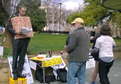 The vigil was held in the Hobart CBD from 10am to 7pm. People took turns reading to onlookers from the Nauru case files that were recently leaked by the Guardian. Others held placards and banners with messages of solidarity for the people in detention centres at Manus and Nauru.