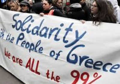 Protests took place in 14 cities in Germany on July 16 against the German government’s aggressive treatment of the Greek crisis and in solidarity with their European Mediterranean neighbours.