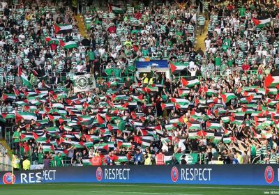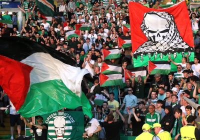 Fans of Glasgow’s Celtic football club showed their support for more than 1500 Palestinian prisoners on hunger strike in Israeli jails, with large banners and Palestinian flags at Celtic’s May 6 football (soccer) match against fellow Scottish side St Johnstone FC.