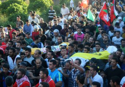 Tens of thousands of Palestinians marched across the West Bank on July 25, following large protests the day before that in with Israeli bullets. The largest rallies in years in the occupied territory came as Israel's ongoing assault on the Gaza Strip killed at least 850 people, including hundreds of children. Israel has fired on protesters, shooting at least nine dead, Electronic Intifada said that day.