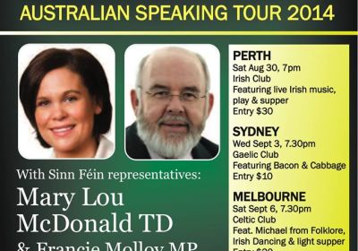 Eoin O’Broin is an activist with Irish republic party Sinn Fein. He is on the South Dublin County Council and is also a member the party's Ard Comhairle (national executive). Two Sinn Fein leaders, party Vice President and TD Mary Lou McDonald and MP Franci Molloy, are touring Australia and speaking in Perth, Sydney, Melbourne and Brisbane from August 30 to September 7. You can book tickets here.