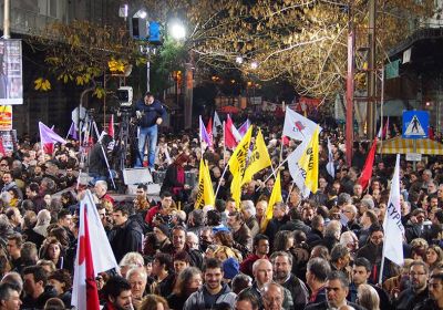 Tens of thousands gathered in Omonia Square to hear Alexis Tsipras, leader of radical left party SYRIZA, speak at the last campaign rally before Greece's January 25 crucial election — which polls indicate SYRIZA will win.