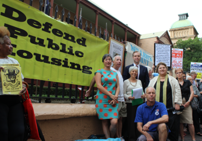 Public housing residents in Millers Point facing eviction orders are so distressed that one of them committed suicide this week, Save Millers Point campaigner Barney Gardner told a public housing protest outside NSW Parliament on March 10. The protest united several campaigns against NSW government attempts to privatise public housing in Glebe, Millers Point and elsewhere in the state, to highlight public housing as an important election issue There has been at least one other Millers Point resident who attempted suicide earlier, Gardner told Green Left Weekly.