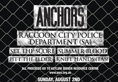 MELBOURNE Come to Rage for refugees, a fundraiser for the Asylum Seeker Resource Centre:. Lineup: Anchors; Raccoon City Police Department; Tired Minds; Summer Blood; Pitt the Elder; Knife Hands. Tickets: $10 online; $15 at door. Sunday August 2 at 1pm. Wrangler Studios, 8C Whitely Pde, West Footscray. Tickets: visit oztix.com.au. -