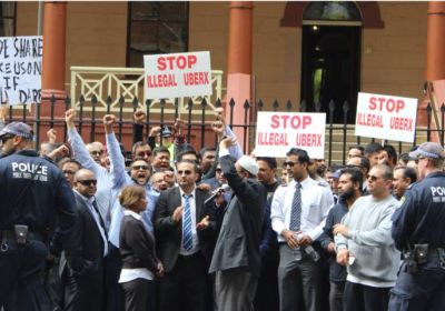 Taxi drivers and operators stopped work in major cities across Australia on September 10 in protest against Uber, which taxi drivers say is running an illegal, unregulated service. In Sydney, hundreds of taxi drivers protested against Uber outside NSW Parliament. NSW Taxi Operators and Drivers Association president Anne Turner told Green Left Weekly: "We are here today to save our livelihoods." In Melbourne, more than 1000 people rallied outside Parliament House, then marched on the Victorian Taxi Services Commission.