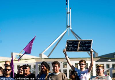 Students held a protest on the eve of the federal budget in Canberra on May 9 to protest the proposed increase of higher education fees.