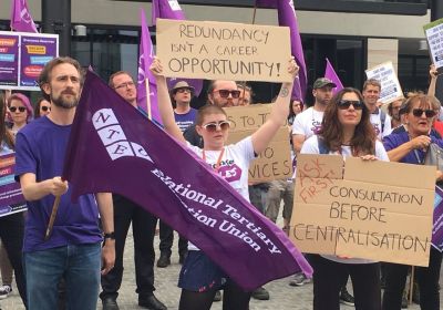 About 200 general and academic staff rallied at the University of Sydney on October 3 against management plans to cut jobs and services in the professional support staff area.