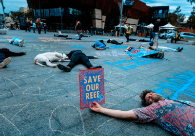 A snap action by Extinction Rebellion Western Australia highlighted the plight of the Great Barrier Reef. Kerry Smith reports.