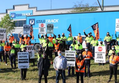 Up to 2000 Transport Workers' Union members at StarTrack went on strike for 24 hours to protect jobs and win job security guarantees. Jim McIlroy reports.