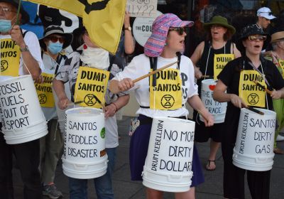Extinction Rebellion SA was trackside at Belair Road, Mitcham, to support cyclists in the Tour Down final race while calling for fossil fuel company Santos to be dumped as a sponsor. Kerry Smith reports.