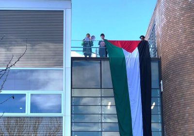 Armidale Friends of Palestine and the community protested Israel’s war on Gaza by unfurling a six-metre flag on the University of New England campus.