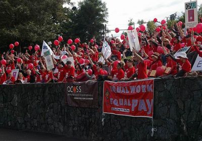 Tens of thousands rallied around Australia on June 10 in support of the Australian Services Union’s (ASU) pay equity test case for community sector workers. The ASU has opened a test case with Fair Work Australia under the equal remuneration power of the Fair Work Act. The ASU claim is for pay rises of about 25% for community sector workers. It follows a successful application in the Queensland Industrial Relations Commission last year.