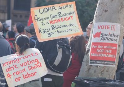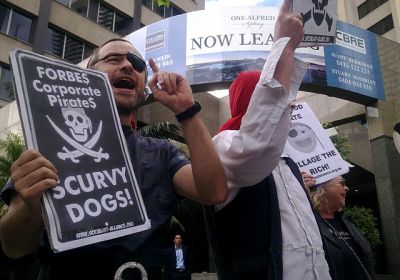 A protest by "anti-corporate pirates", organised by the Socialist Alliance, took place outside a global corporate CEO's conference organised by Forbes at the luxury Four Seasons Hotel in Sydney on September 29.