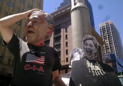 Being a political activist can be fun. About 15 of us enjoyed throwing shoes in a Sydney Stop The War Coalition action on November 8 outside the US Consulate. We were protesting against the AUSMIN war talks with US Secretary of Defense Robert Gates and US Secretary of State Hillary Clinton in Melbourne. Protesters threw shoes at cardboard cutouts of Gates, Clinton, PM Julia Gillard and Kevin Rudd.