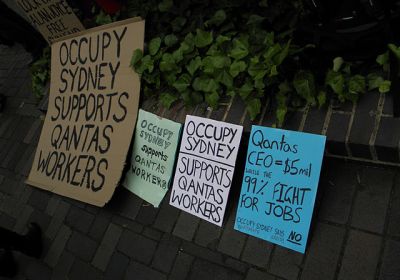 Occupy Sydney activists organised a protest outside the Qantas shareholders conference on October 28 at the University of New South Wales in support of Qantas workers struggling for decent wages and job security.