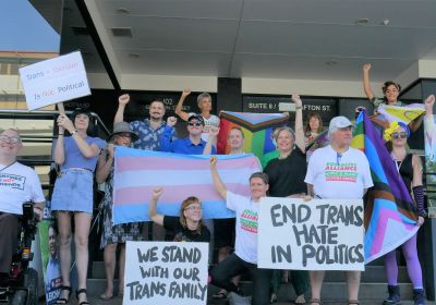 On International Day Against Homophobia, Biphobia and Transphobia day, protesters affirmed they would not let politicians promote bigotry. Kerry Smith reports.