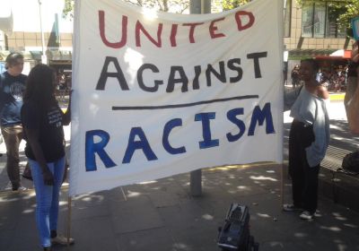 Hundreds of people attended a rally in Melbourne's CBD on February 4 to protest racist media coverage and treatment at the hands of the police and politicians.