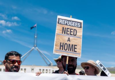Refugees and their supporters converged on Parliament to demand the federal government act on its promise to give 19,000 refugees permanent visas. Kerry Smith reports.