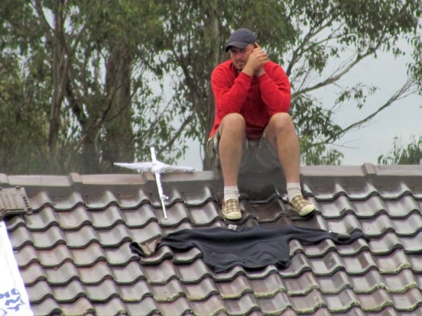 A refugee in Villawood detention centre takes part in a rooftop protest. Photo: Vlaudin Vega/Facebook