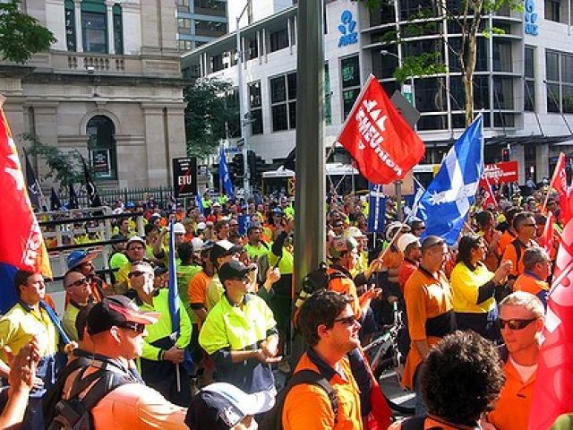 An estimated 3500 building workers walked off the job and rallied in Brisbane’s CBD on May 24 to protest sham contracts being imposed by unscrupulous contractors in the construction industry.