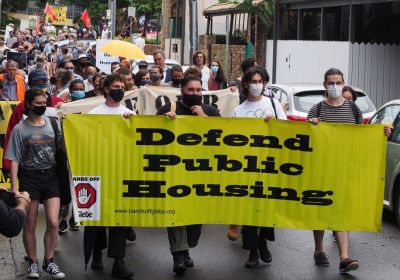 More than 100 people protested against the New South Wales government's plan to bulldoze 112 public housing dwellings in Glebe, reports Peter Boyle.