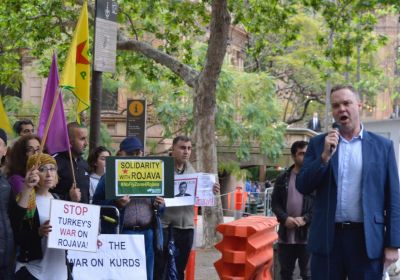 On October 8, NSW Greens MP for Balmain Jamie Parker addressed the first of a round of emergency protests against Turkey's invasion of the Kurdish-liberated democratic autonomous territories in northern and eastern Syria, popularly known as Rojava.