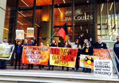 About fifty supporters holding Aboriginal flags and chanting “Deicorp, Deicorp we won’t stop! Get your hands off The Block” gathered on August 14 to defend the Redfern Aboriginal Tent Embassy’s (RATE) fight for affordable Aboriginal housing on The Block.