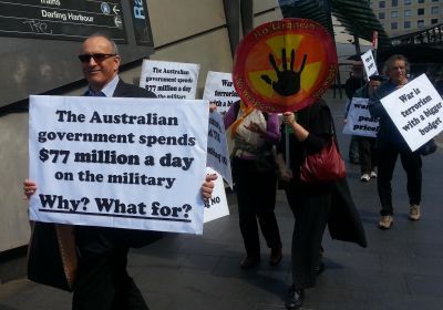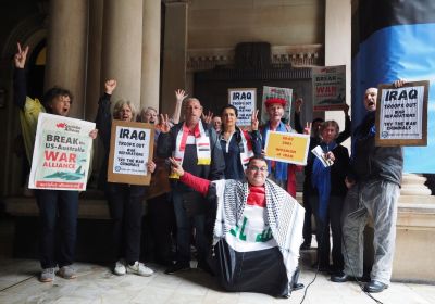 Anti-war protests outside MPs’ offices demanded that AUKUS be scrapped and the $170 billion allocated to nuclear-powered submarines be instead spent on human need, reports Pip Hinman.